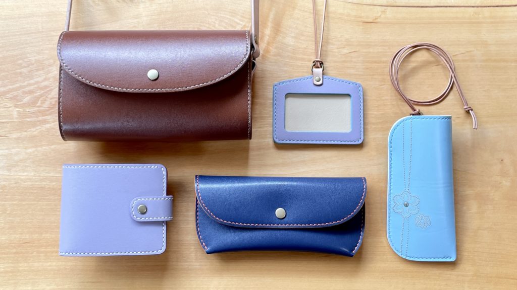 ショルダーバッグから、お財布やキーホルダーなどの革小物まで。体験もオーダーも全11種類から選べます。
